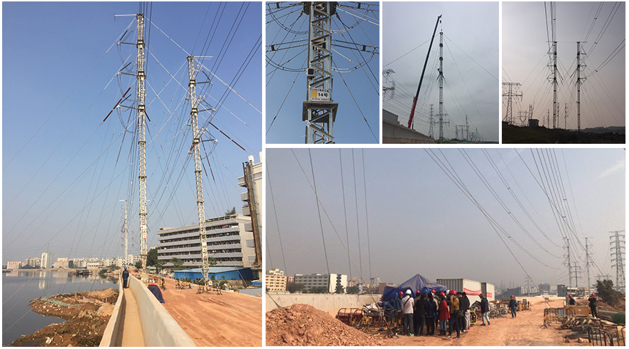 與會代表首先對ERS應用的成功案例——深圳外環高速項目中的220KV象創乙線臨時線路、220KV奮琵乙線臨時線路進行了實地考察。該項目位于沙井東寶河河邊,線路全長1.857kM,由24基ERS轉角塔形成的雙回路臨時供電線路,同期進行的有茅洲河整治工程、茅洲河堤岸加固工程、外環高速建設工程;面對復雜多變的情況,廣東和發輸變電安裝有限公司的專利技術電力線路應急搶修系統(ERS)僅用了三天的時間就使得臨時線路全部通電運行,臨時線路在線運行37天,并于2017年12月30日成功完成臨時轉供電任務。