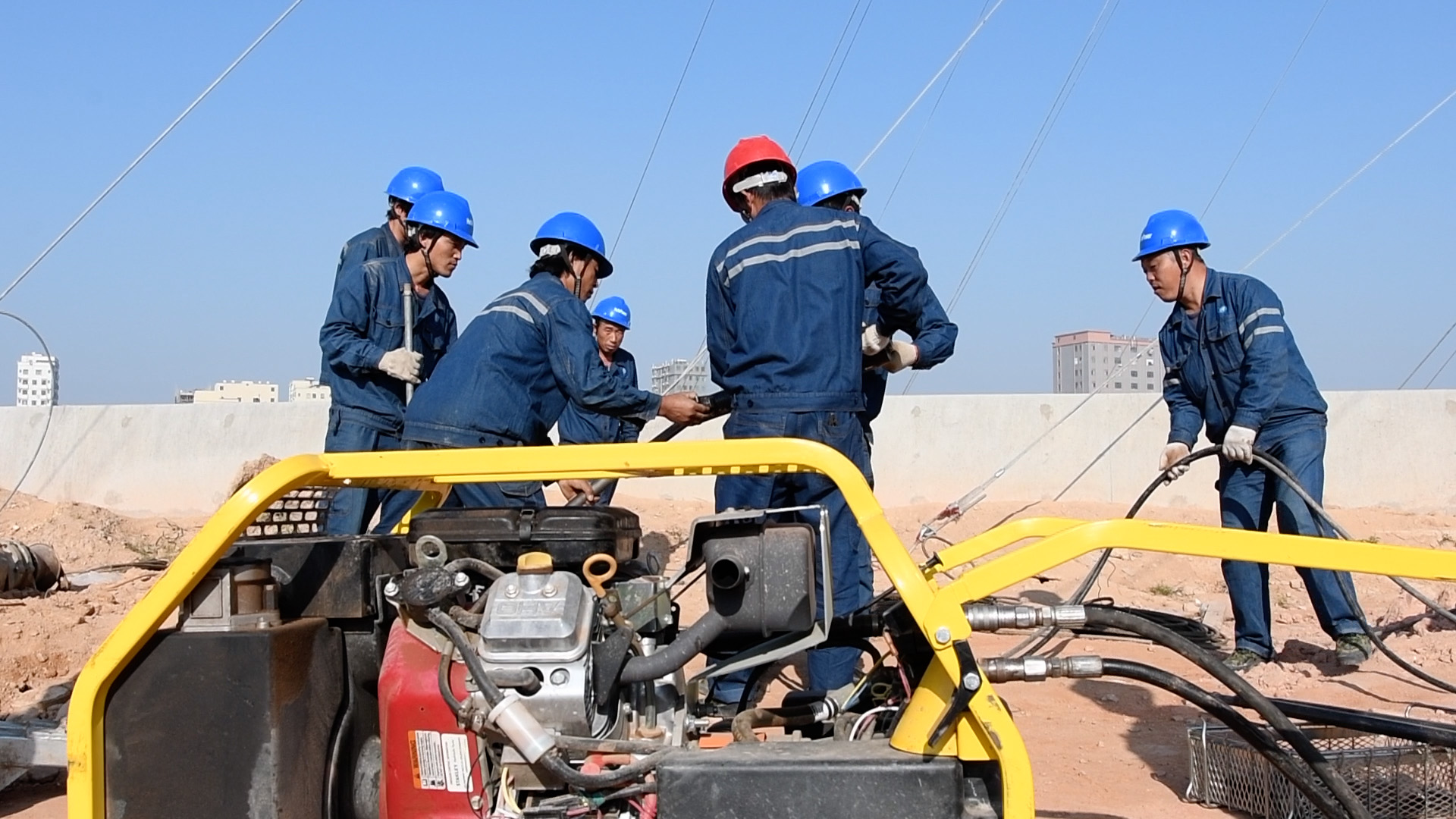 (廣東和發工作人員演示打地錨的操作)